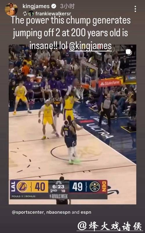 詹姆斯200岁依旧暴扣炫酷!本人幽默回应好友夸赞:配上6个笑哭表情